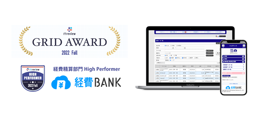 「経費BANK」が「ITreview Grid Award 2022 Fall」の経費精算部門にて3期連続「High Performer」を受賞