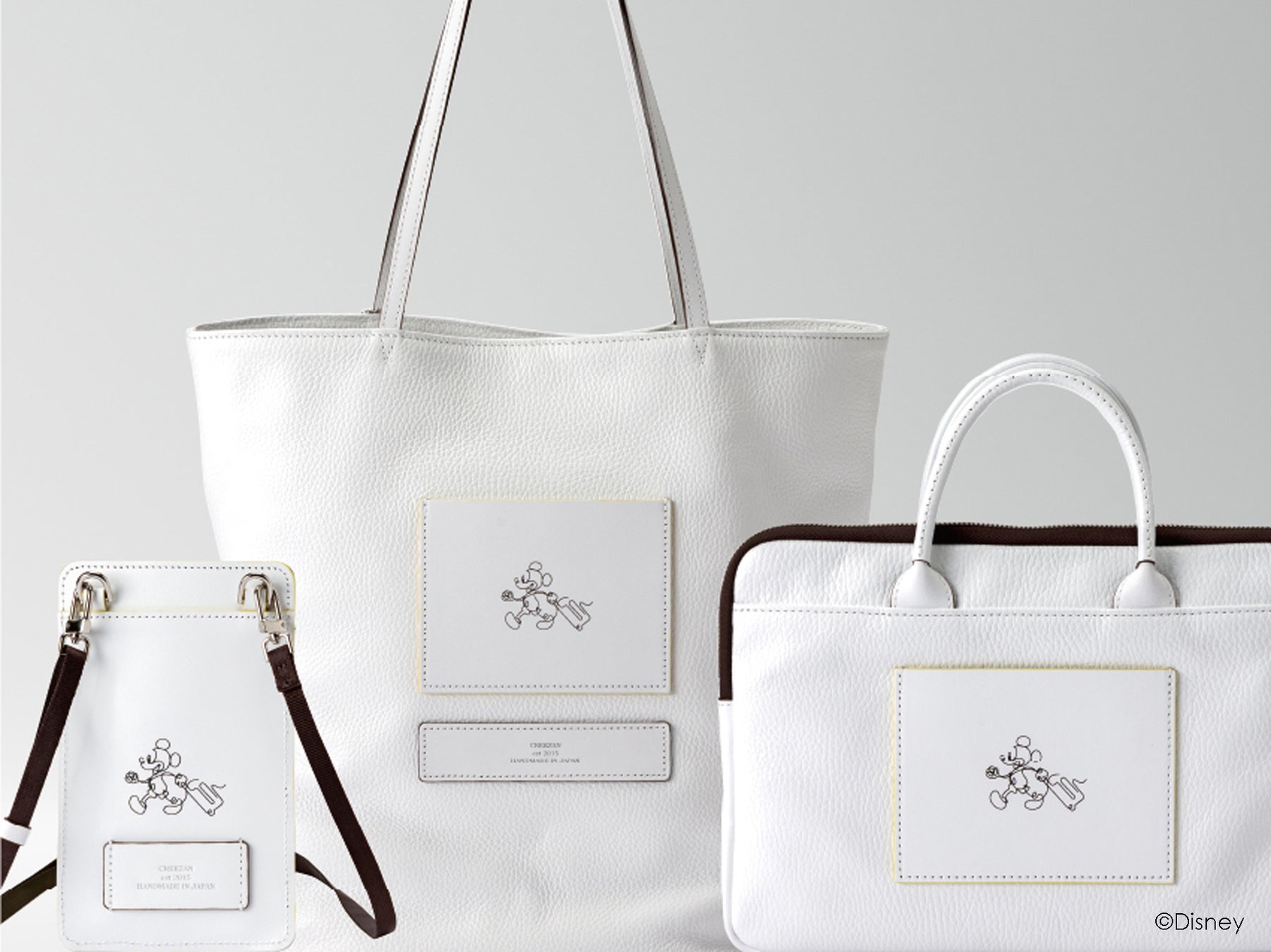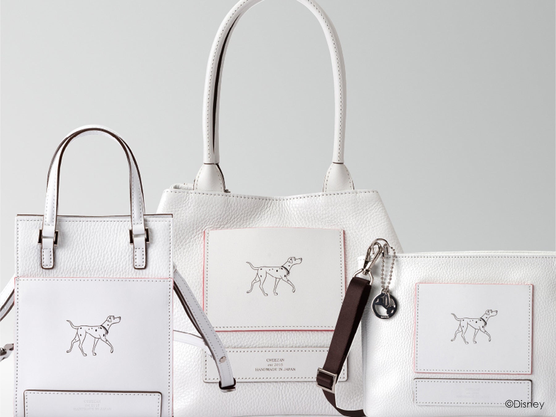 ミッキーマウスと映画『101匹わんちゃん』の母犬ダルメシアンのパディータをフィーチャーしたバッグコレクション。上質なホワイトレザーのみで展開するCREEZANのフラッグシップシリーズ「JETTER」の人気モデルをベースにアレンジし、ユニセックスな6アイテムで構成します。