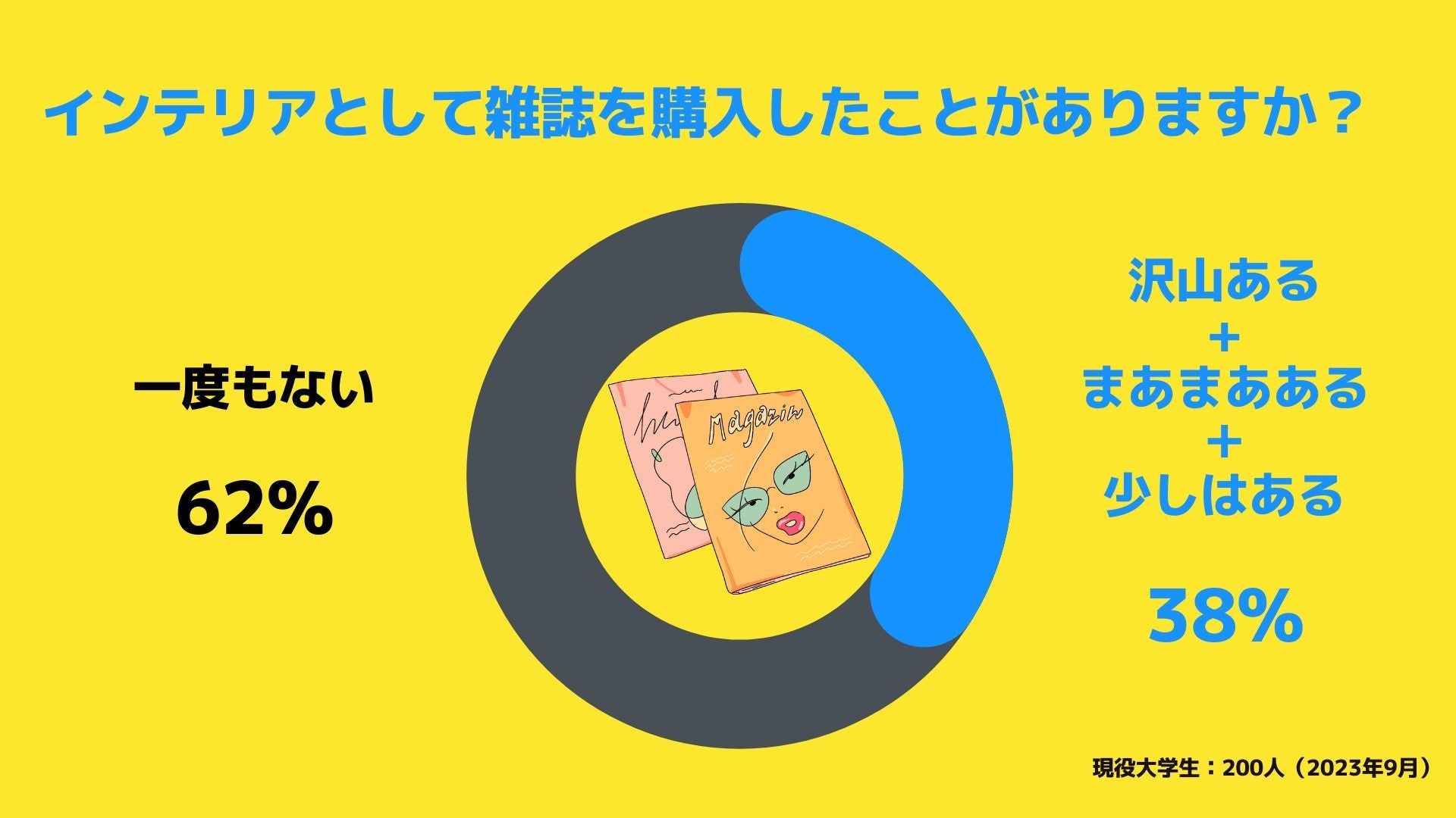 大学生の38%が「雑誌をインテリアとして購入したことがある」と回答。