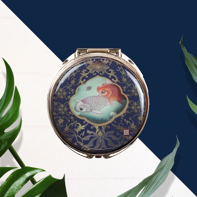 台湾・国立故宮博物院所蔵の「清 乾隆 霽青描金瓷游魚轉心瓶」をモチーフにしたコンパクトミラー。金魚が悠々と泳いでいる美しい絵に、思わずうっとり見入ってしまいそう。