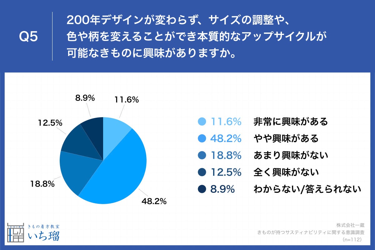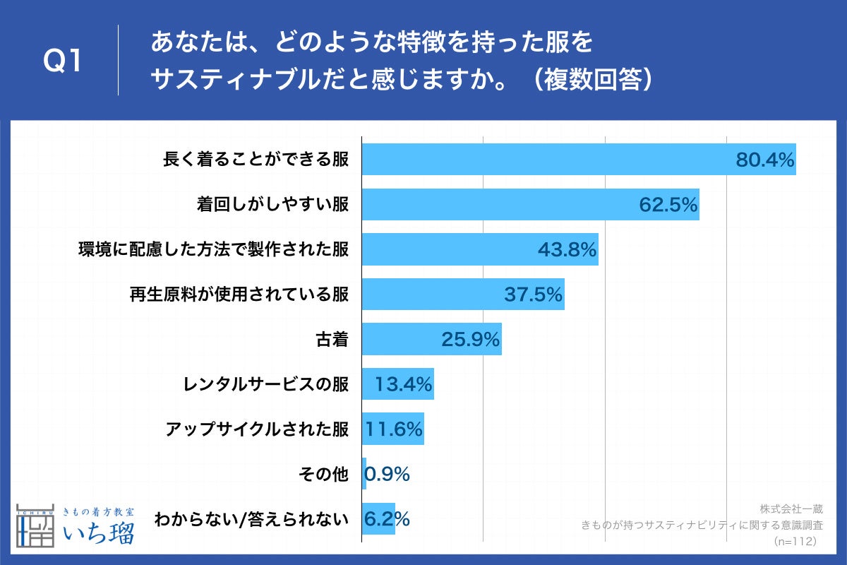 きもの着方教室 いち瑠(https://ichiru.net/)を展開する株式会社一蔵(本社:東京都千代田区、代表取締役社長:河端義彦)は、SDGsに関心があり、普段きものを着用しない方112名に、きものが持つサスティナビリティに関する意識調査を実施いたしましたので、お知らせいたします。