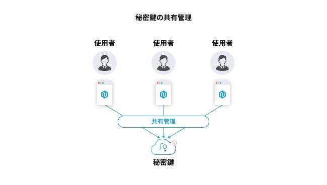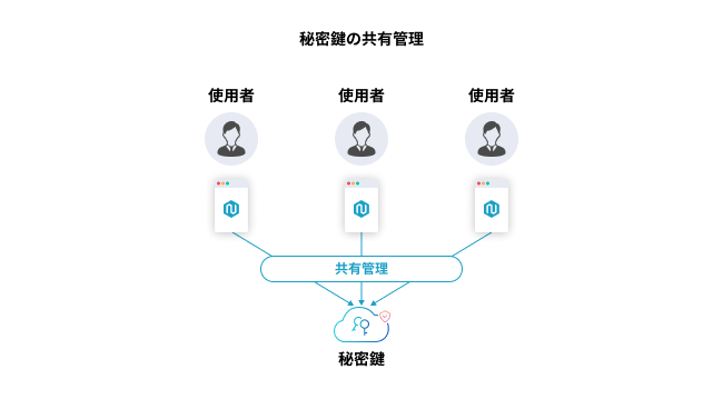 N Suiteが提供するウォレット(N Wallet)により、クラウドでセキュアに保管した秘密鍵を使って、暗号資産の送金やNFT発行などの操作を実行可能です。複数人で秘密鍵を共有して使用できるため、暗号資産の送金やNFT発行などの作業を属人化することなく、複数人で実施することができます。
