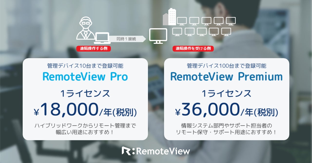 ・RemoteView Premium:年額 36,000円/ 1ライセンス(税別)