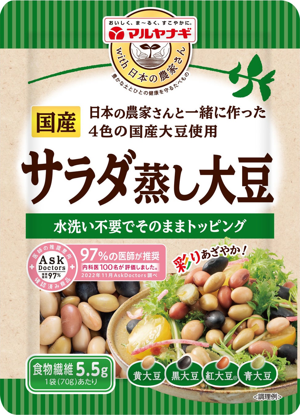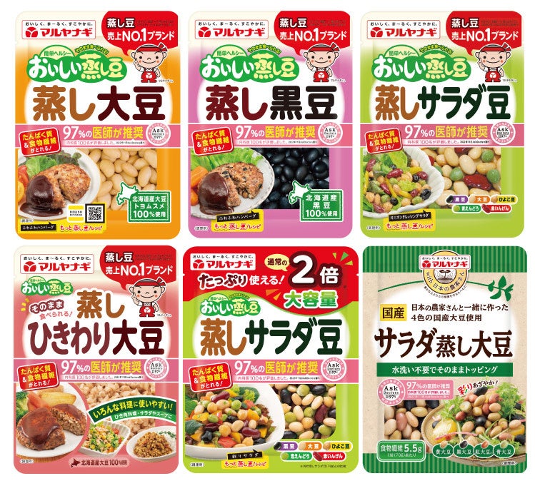 蒸し豆・佃煮・煮豆のマルヤナギブランドを展開する株式会社マルヤナギ小倉屋(神戸市東灘区 代表取締役社長:柳本勇治)は、全国のスーパー・小売店で販売中の「おいしい蒸し豆」シリーズ5品(おいしい蒸し豆蒸し大豆、蒸し黒豆、蒸しサラダ豆、蒸しひきわり大豆、大容量蒸しサラダ豆)とマルヤナギwith日本の農家さんシリーズ1品(国産サラダ蒸し大豆)の賞味期間を2024年11月1日(金)製造分より、常温60日から常温90日に延長いたします。