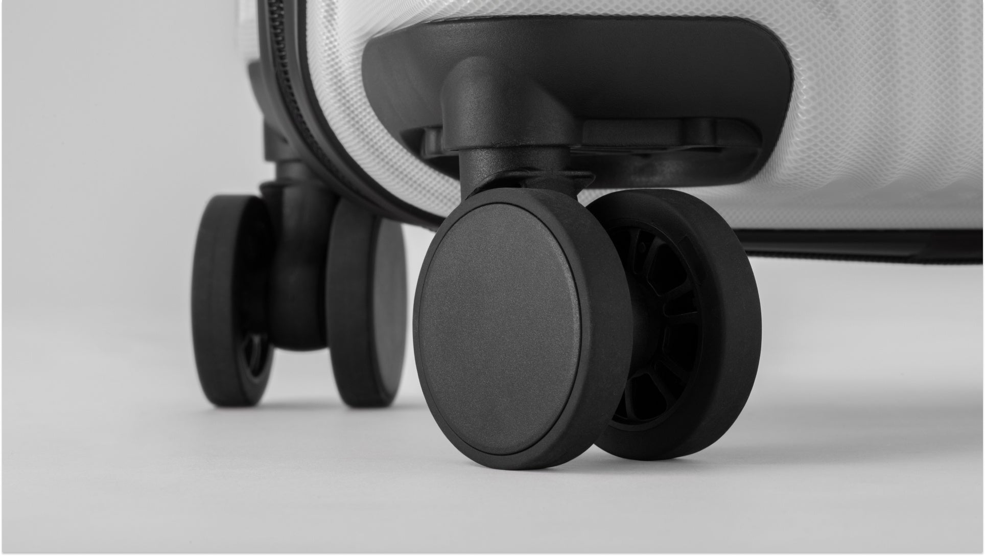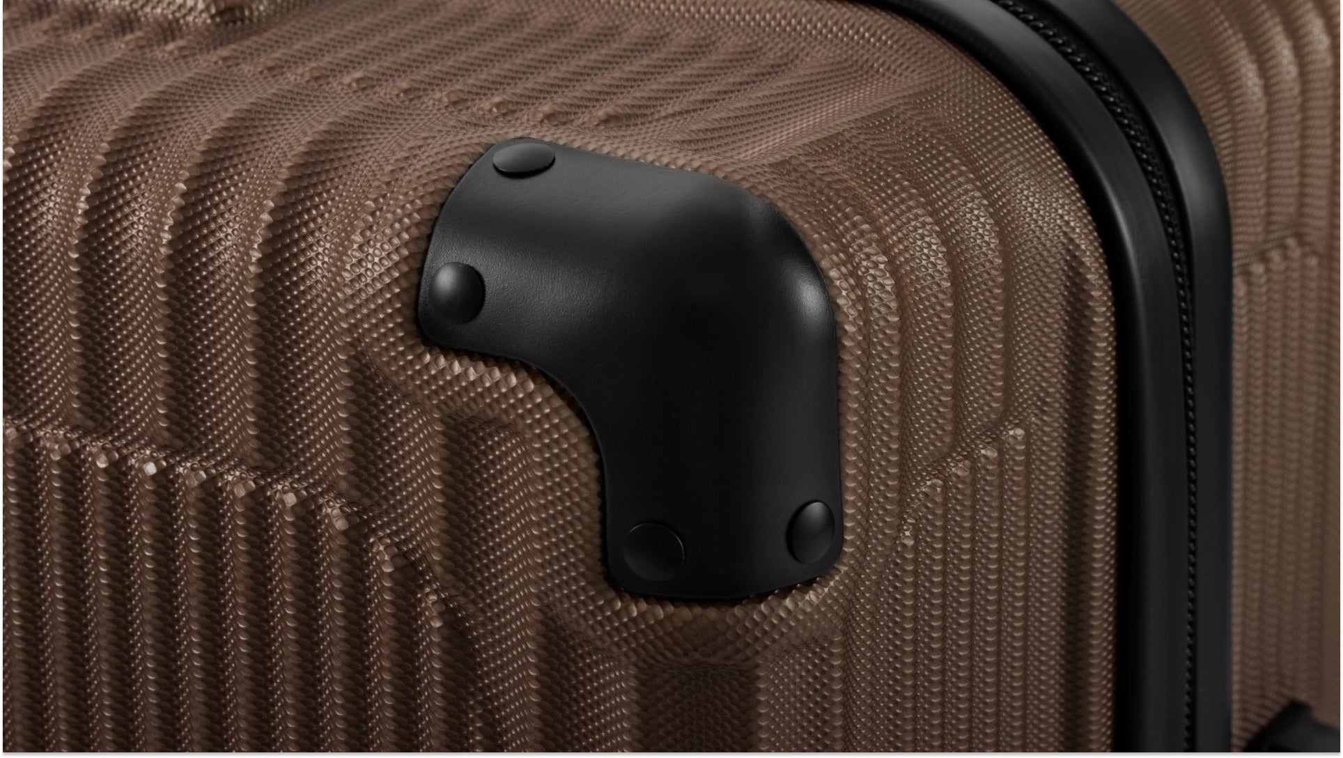 ボディ素材には、衝撃、熱、寒さに強い、耐久性に優れたABSを採用。角にはアルミニウムのコーナーパッドを搭載することで、旅行や出張時に大切な荷物を保護します。 また、傷つきにくいテクスチャ(表面構造)と、2種類の異なる縦向きリブパターン(凹凸構造)を用いることで、さらに耐久性を高めた設計となっています。