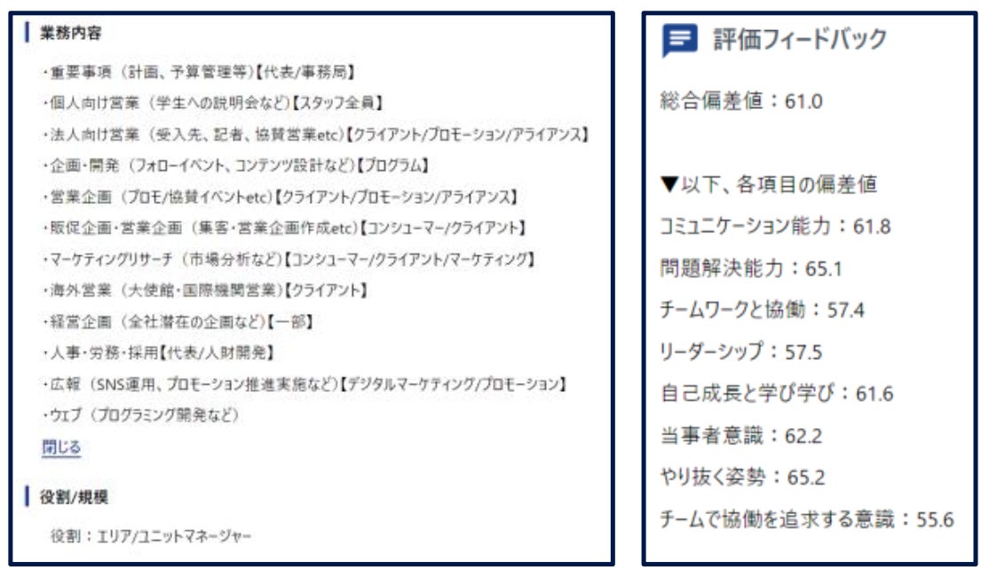 これにより、各学生の具体的なスキルセットと組織内でのパフォーマンス・行動特性が明確に示され、新卒採用を行う企業にとって、従来の「ガクチカ」とは異なる新たな視点で学生を評価できるようになることが期待されます。