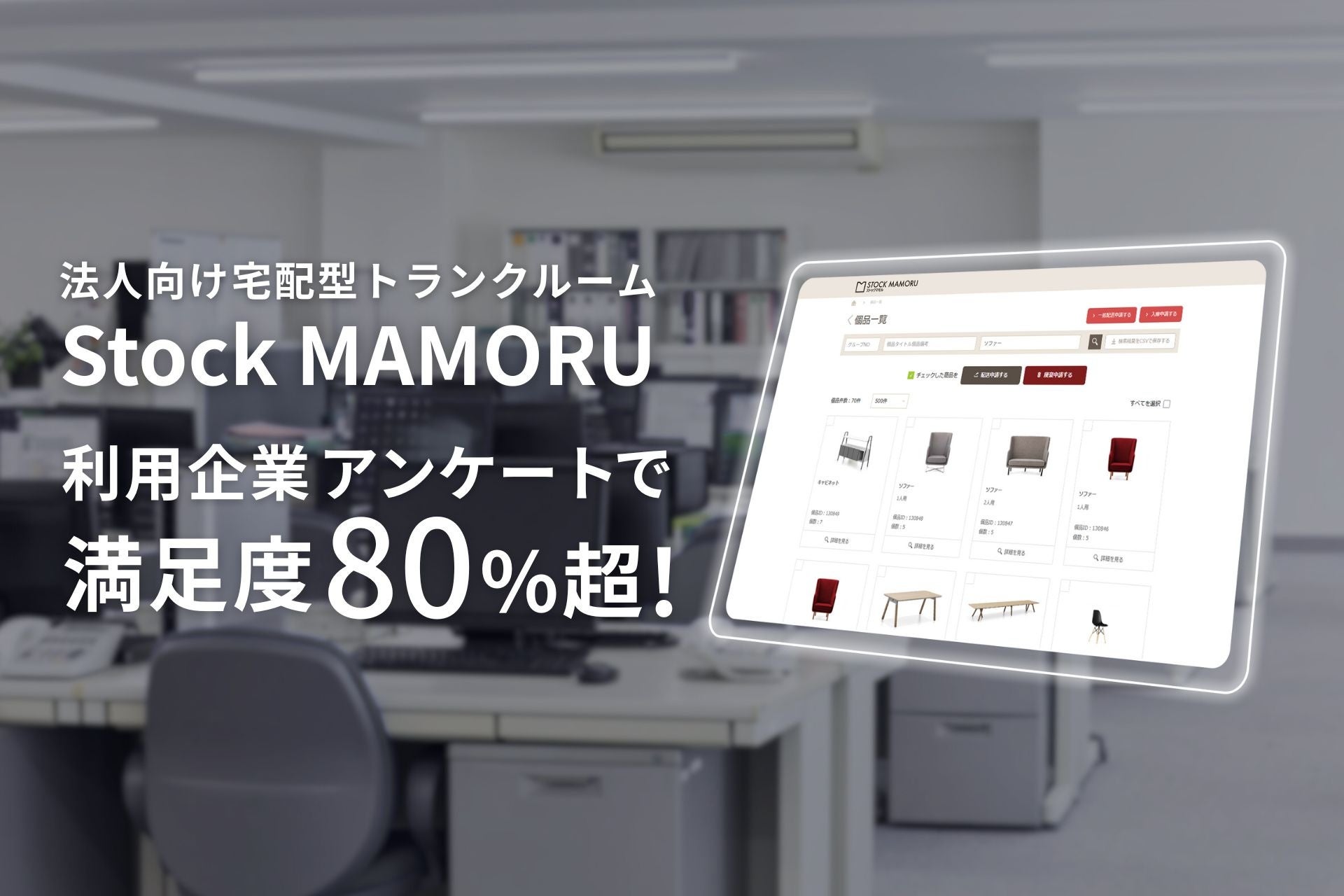 「在庫・備品の置き場がない」悩みを解決! 法人専用宅配型トランクルーム『StockMAMORU(ストックマモル)』利用企業アンケートで満足度80.5%を達成