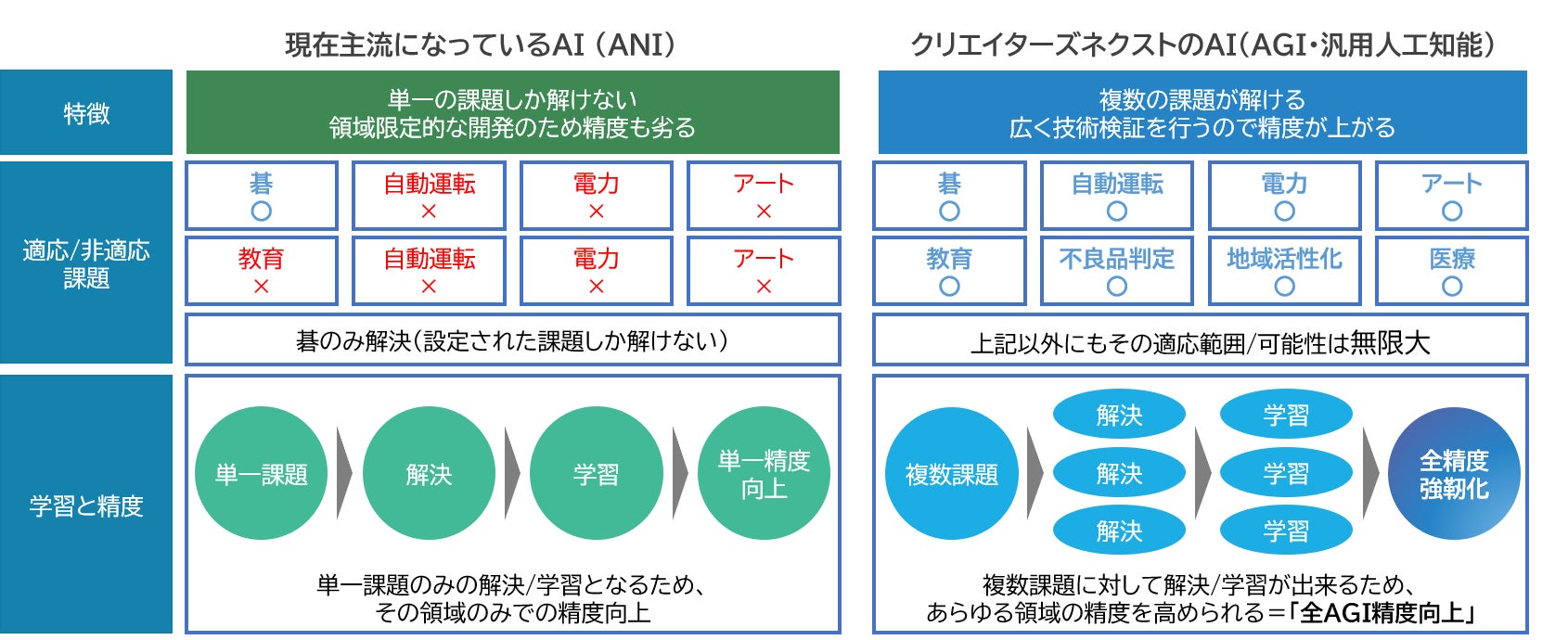 弊社の有するAI(AGI)と従来のAI(ANI)の違い