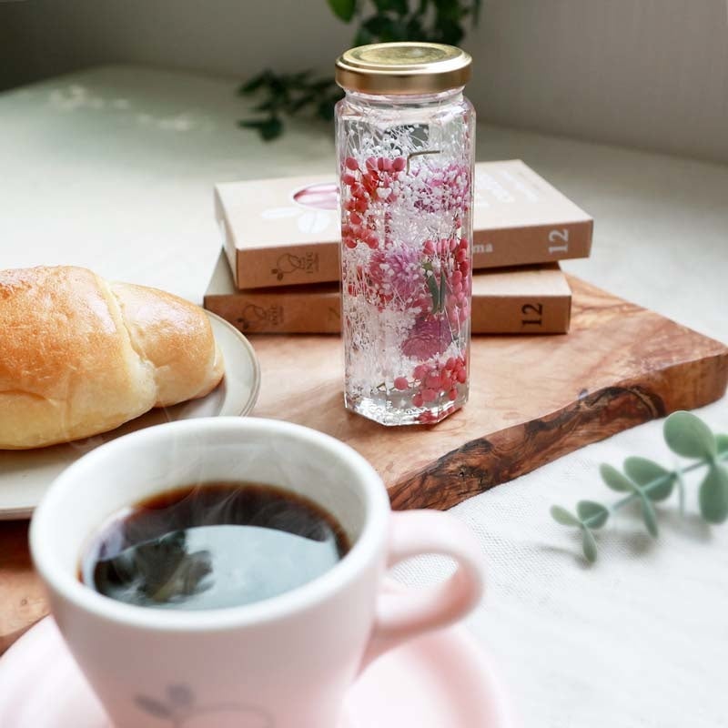 ずっと飾っておける可憐なハーバリウムと、カラダ想いのコーヒー2種類をセットにしました。