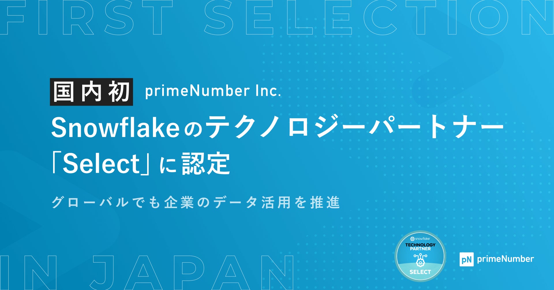 primeNumber社、国内で初めてSnowflakeのテクノロジーパートナー「Select」に認定 グローバルでも企業のデータ活用を推進