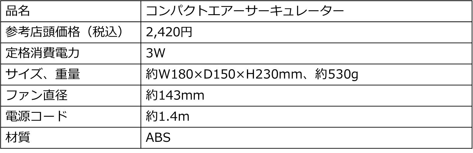 また、自動首振り機能が無く機能をシンプルに絞った「コンパクトエアーサーキュレーター」も同時に発売します。