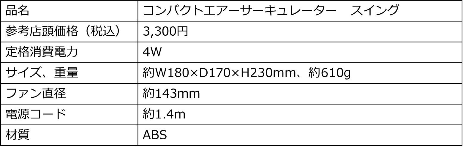 - 「コンパクトエアーサーキュレーター スイング」製品概要