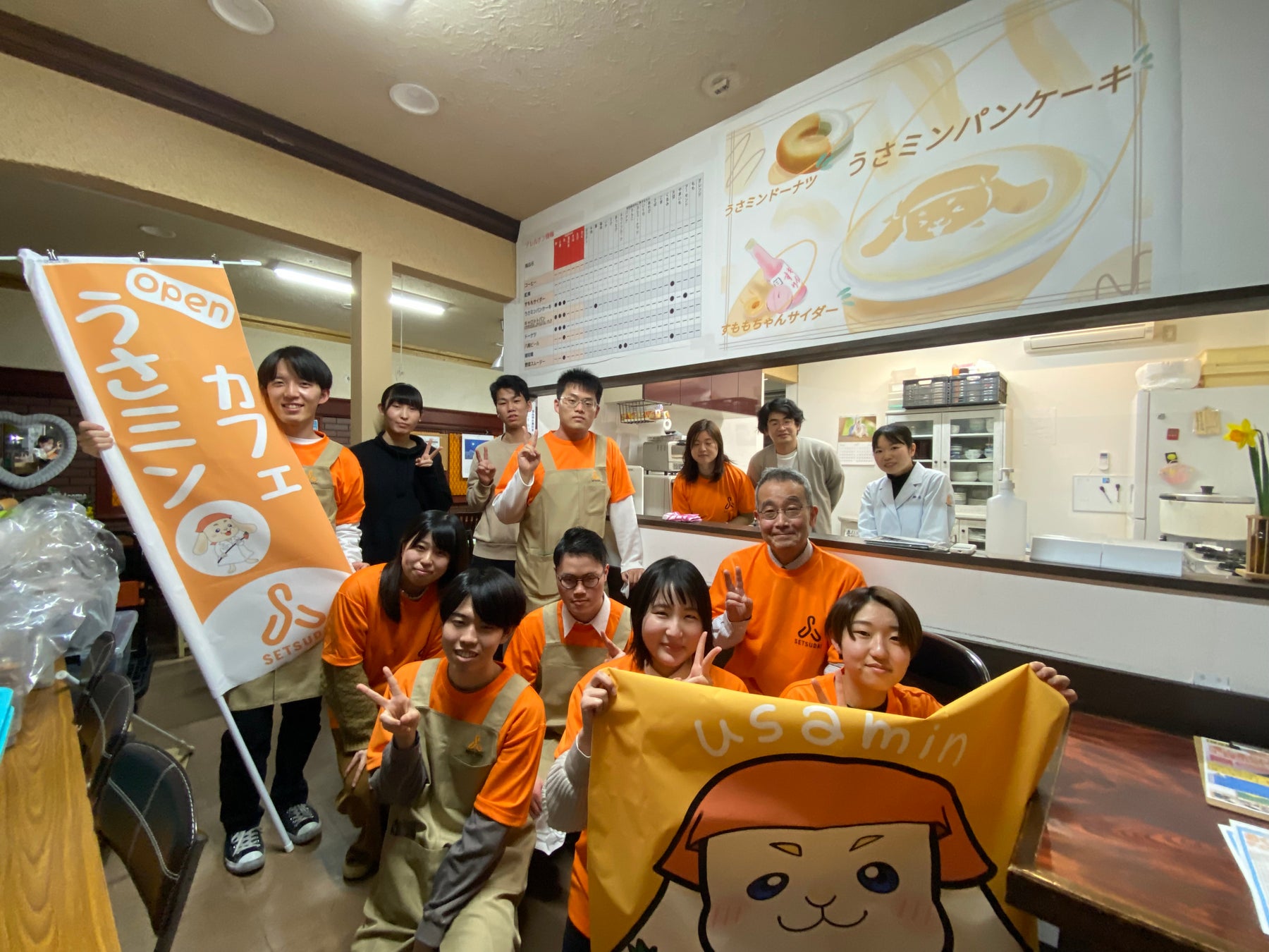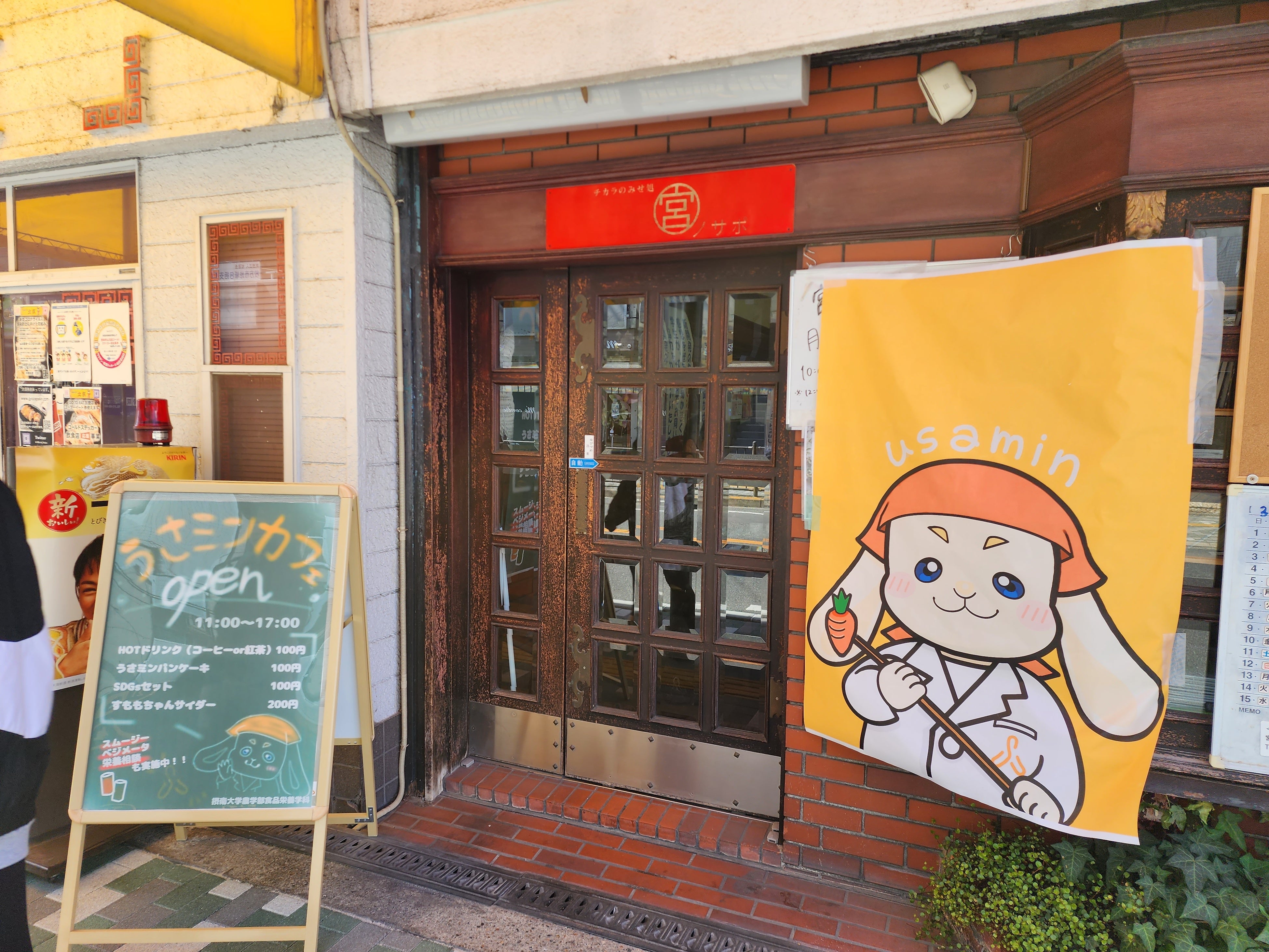 カフェコーナー(350カレー、オニオンスープ、おからチョコタルト、カボチャとニンジンのパウンドケーキ、コーヒー、紅茶、チョコレートドリンク、農学部と枚方市が開発した同市特産すももで作る「すももちゃんサイダー」)