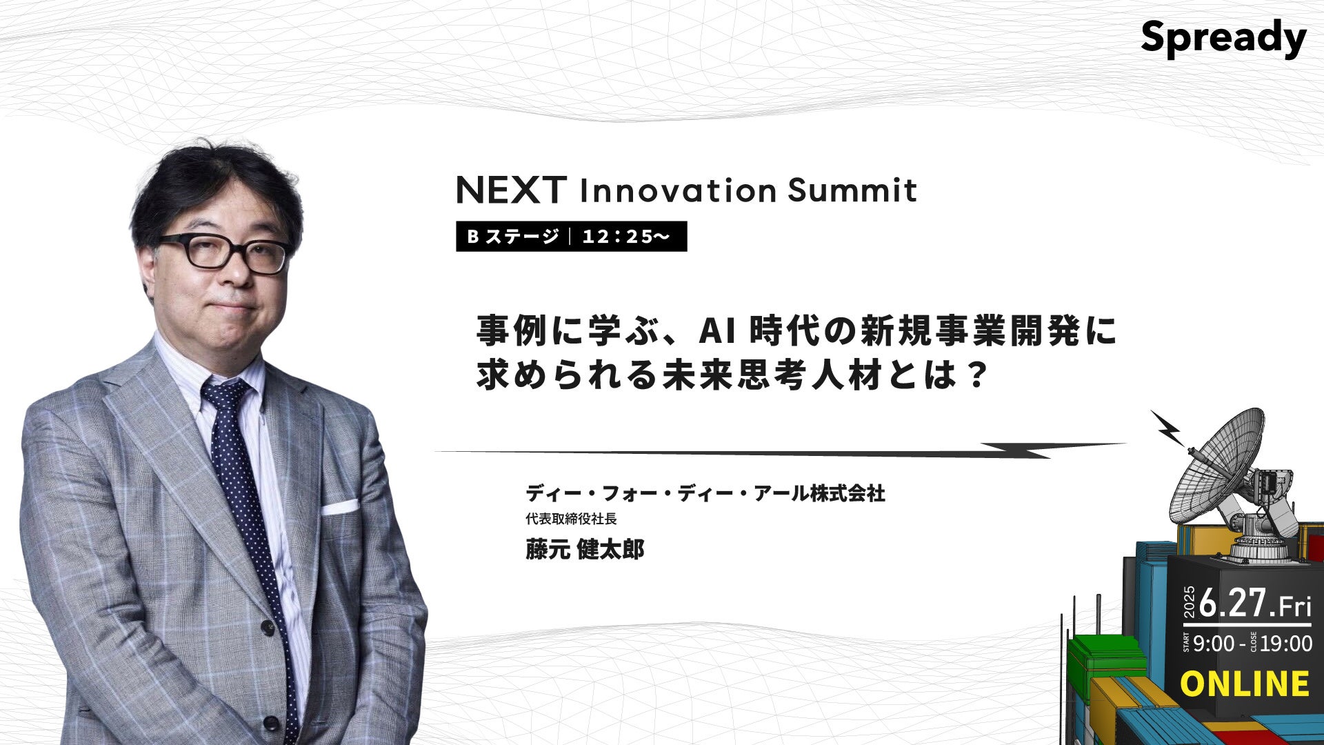新規事業に出会えるプラットフォーム「Spready(スプレディ)」を運営するSpready株式会社(本社:東京都渋谷区、代表取締役社長:佐古雅亮、以下「当社」)は、2025年6月27日(金)に新規事業の取り組みや知見を発信するカンファレンス「NEXT Innovation Summit 2025 in Summer 新規事業担当者のための『学び』と『出会い』があふれる1日(以下「本イベント」)」の放送プログラムが決定したことをお知らせします。