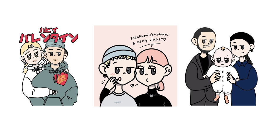 似顔絵の所要時間:30分程度(イラスト作成のみ。作成後、イラストレーターと一緒にアパレルをご案内します)