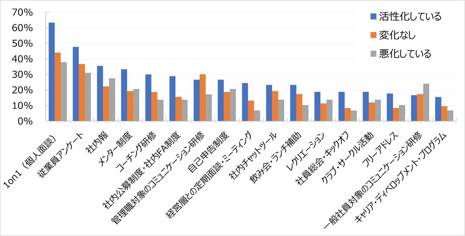 社内コミュニケーションが活性化している企業は3割、実施している施策は?