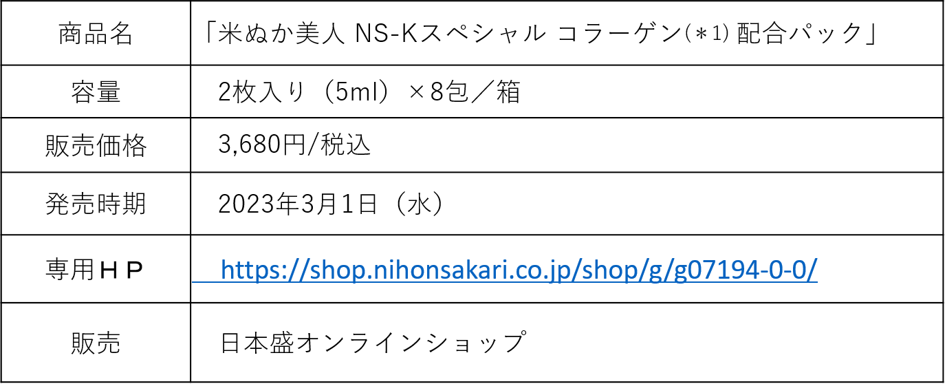 米ぬか美人発売35周年記念商品 第2弾 「米ぬか美人 NS-Kスペシャル コラーゲン(*1)配合パック」新発売のお知らせ