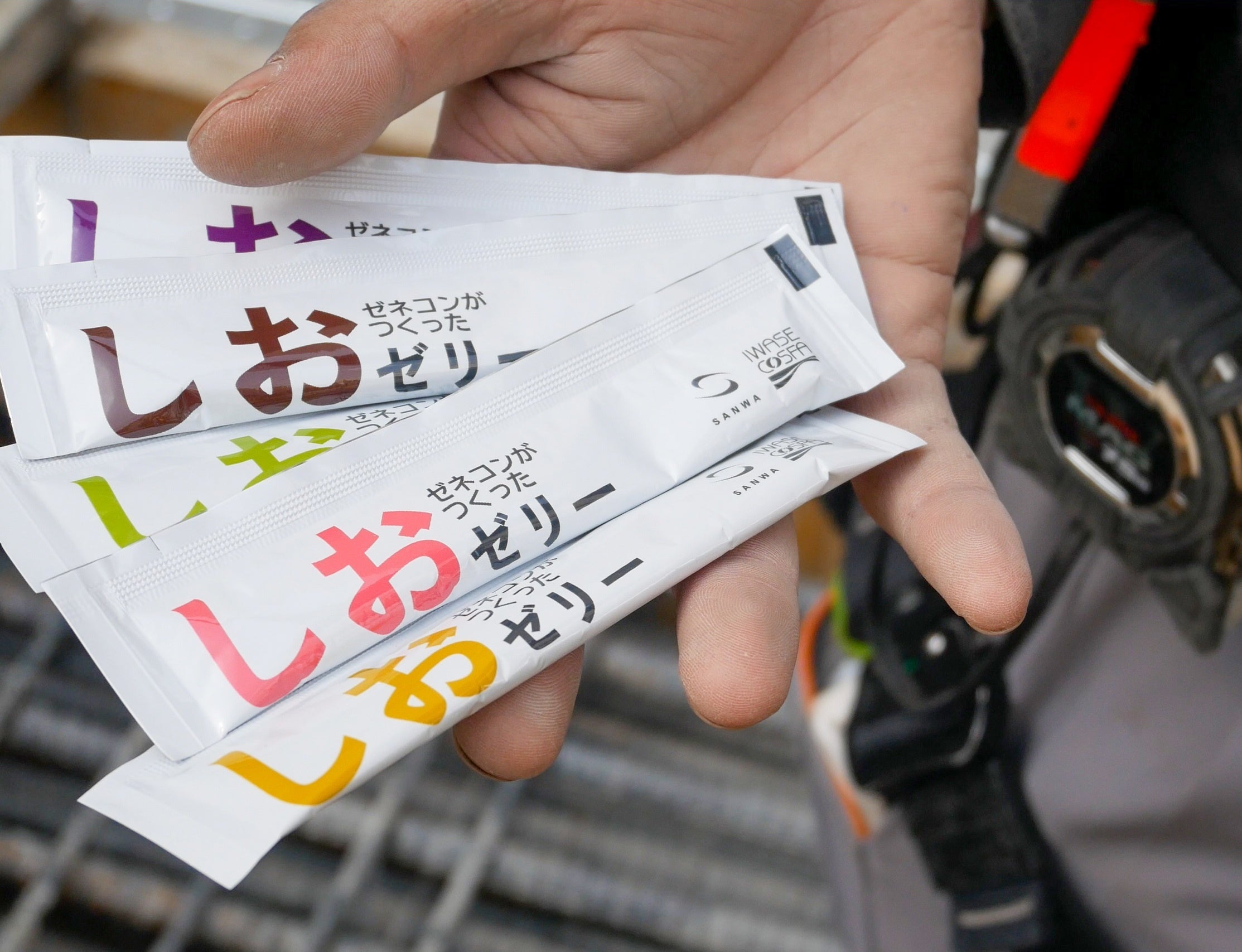 現場で働く仲間の命を守るため、三和建設は2020年、まず自社用に塩分補給ゼリーの開発を始めました。