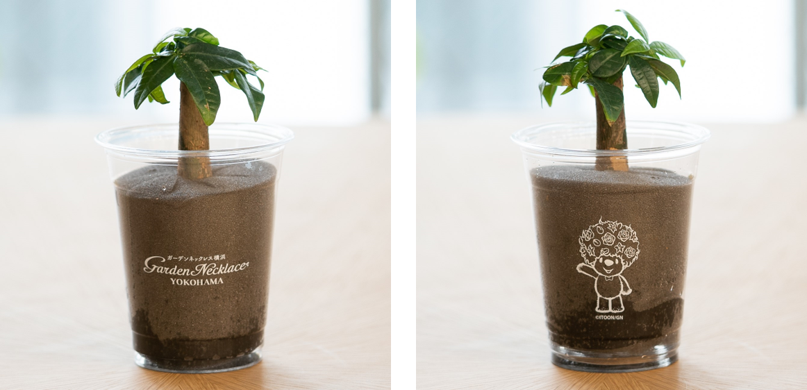 横浜市が現在開催している、横浜の街を舞台に美しい花と緑をネックレスのようにつなぐ「ガーデンネックレス横浜」のロゴと、そのイメージキャラクターであるガーデンベアのイラストをTable Plantsのカップに特別にデザインしました。販売する品種は、人気のガジュマル、パキラ、ドラセナ、サンスベリアの4種です。