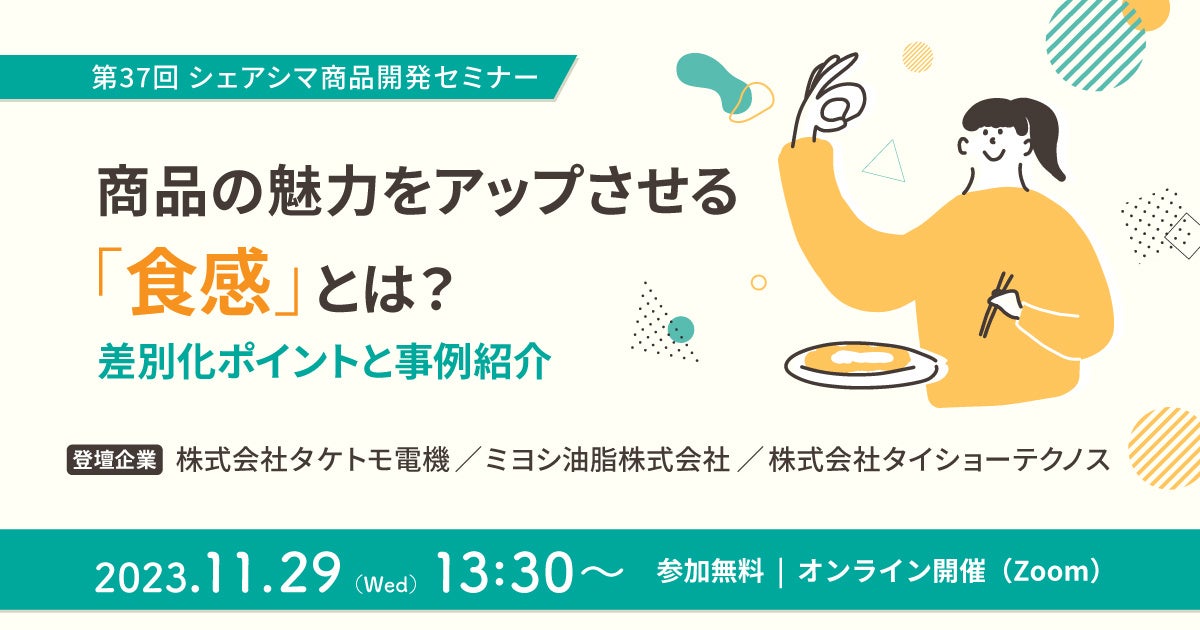 《第37回シェアシマ商品開発セミナー》商品の魅力をアップさせる「食感」とは?差別化ポイントと事例紹介|11月29日(水)開催