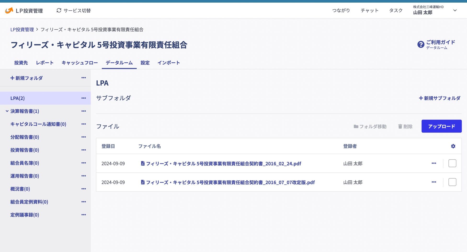 LPAや決算書などのドキュメントをファンドに紐付けて格納することができます。部署間の連携や、業務の引き継ぎをスムーズにします。