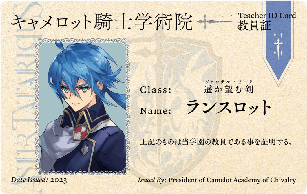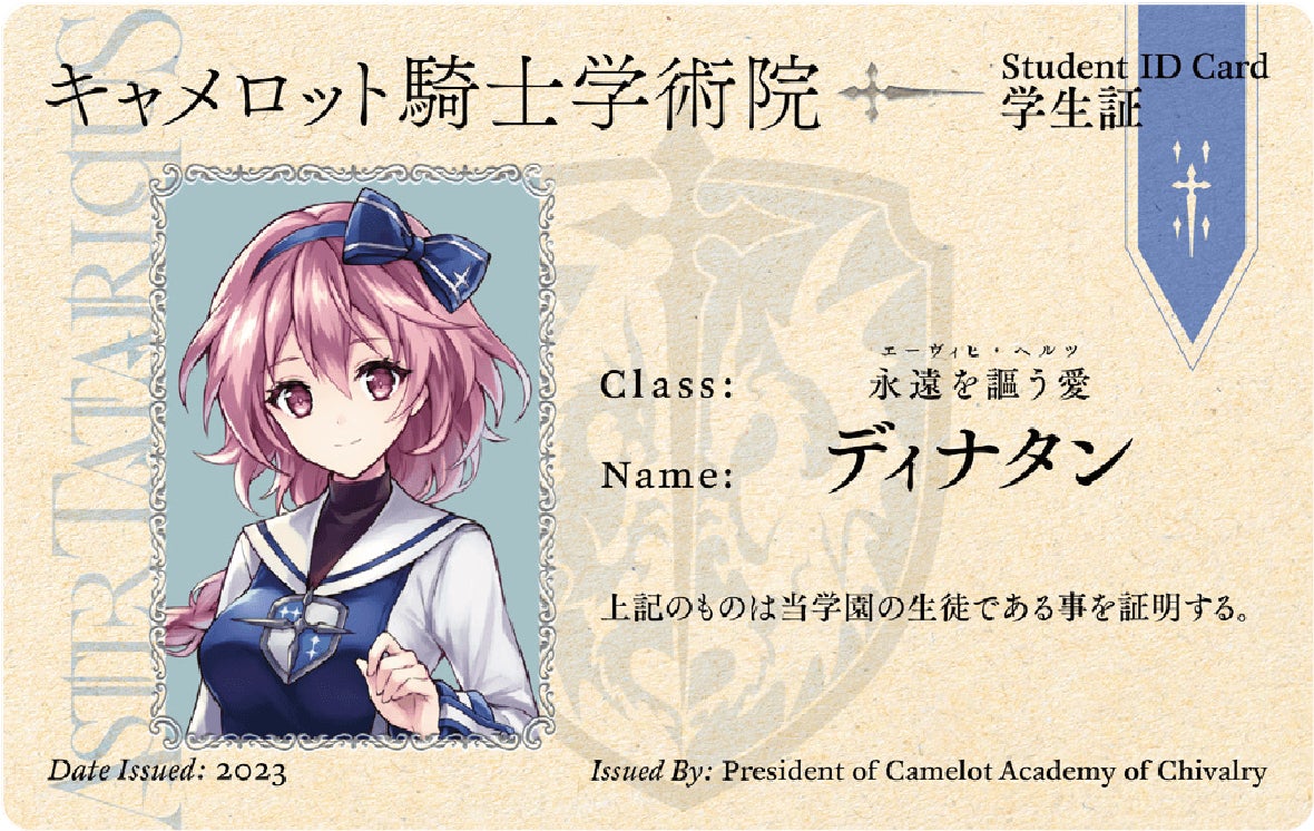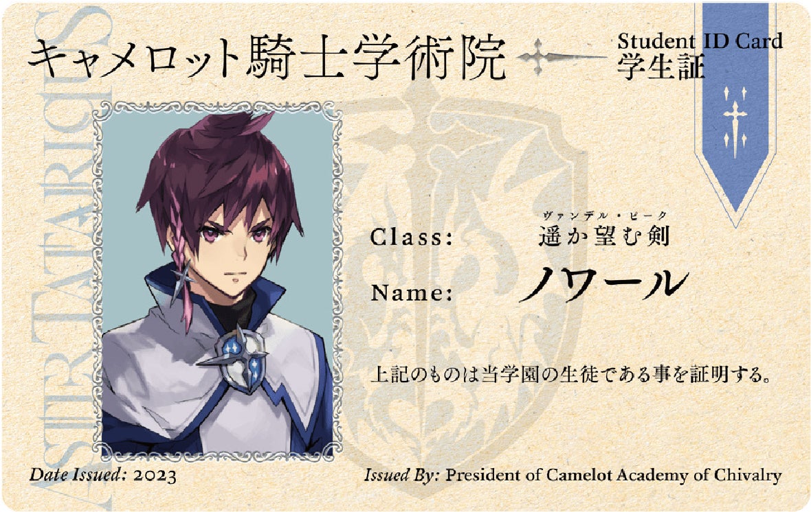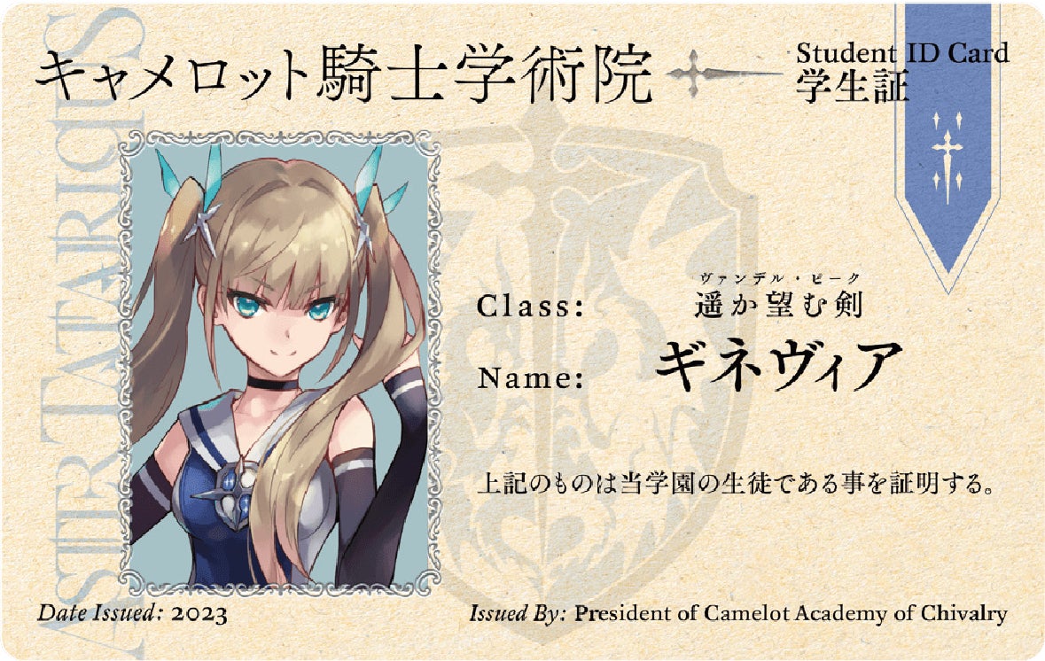 学生証は「ノワール」「ディナタン」「ギネヴィア」「ランスロット」の全4種から1枚を同梱。