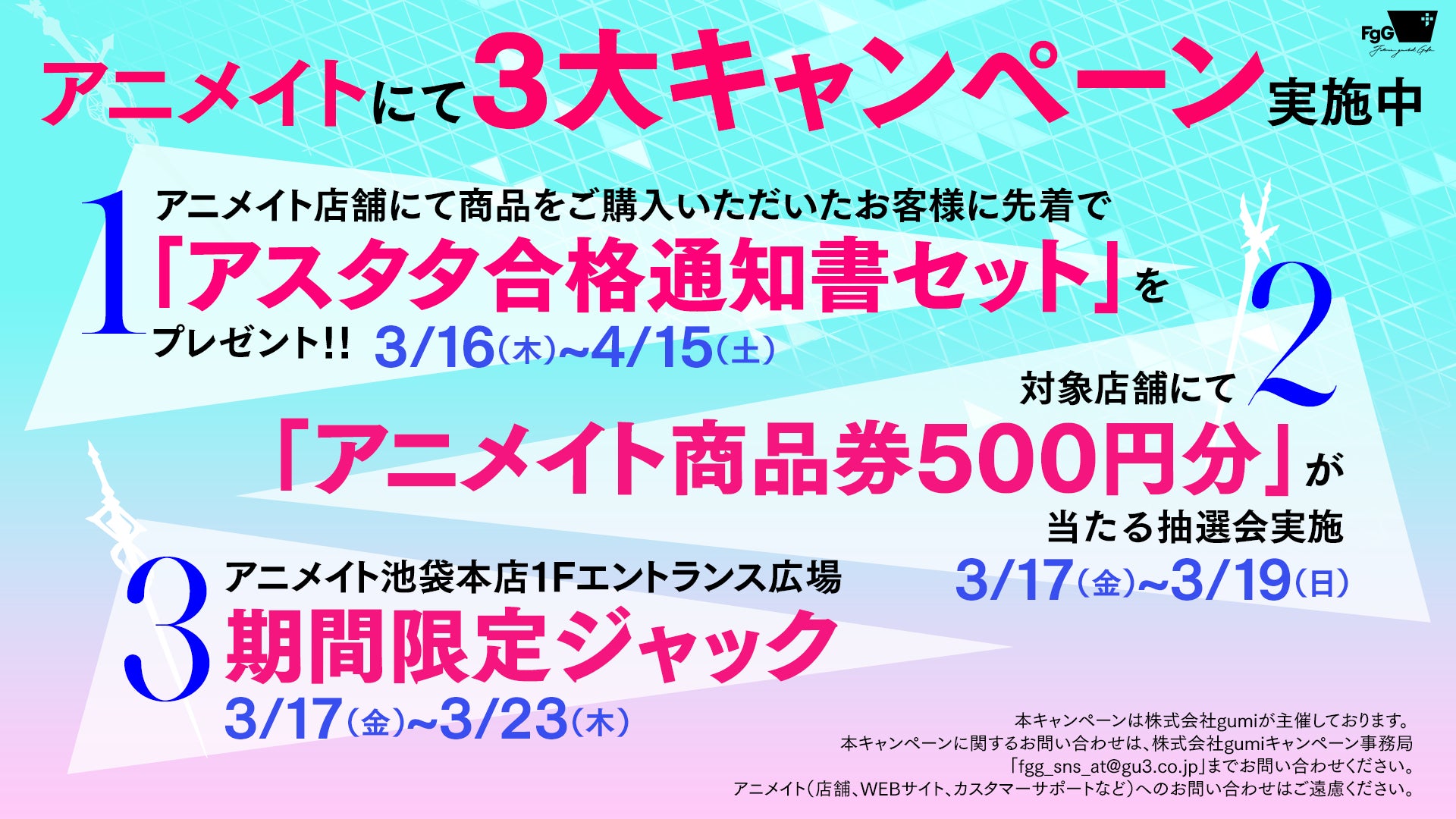■アニメイトにて実施!アスタータタリクス3大キャンペーン!
