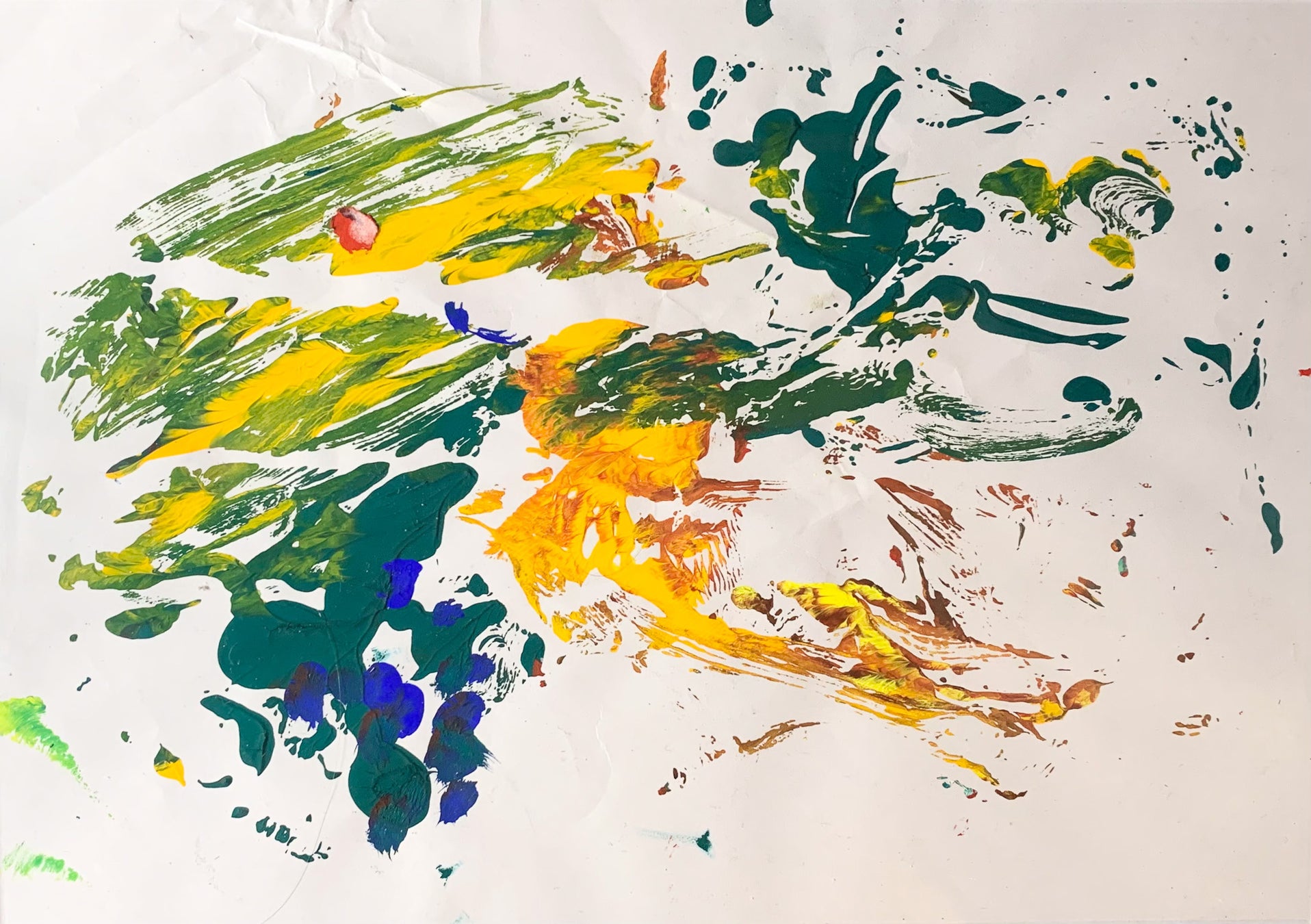 Thumbelinaは2023年に誕生し、1歳にして描画への熱意を注ぎ始めました。直感的な色遣いと自由なストロークが特徴的なペインティング作品は人間の原初的な創造的衝動性を感じさせるとともに、1歳児ながらも既にひとりの表現者としての特異性を放っています。