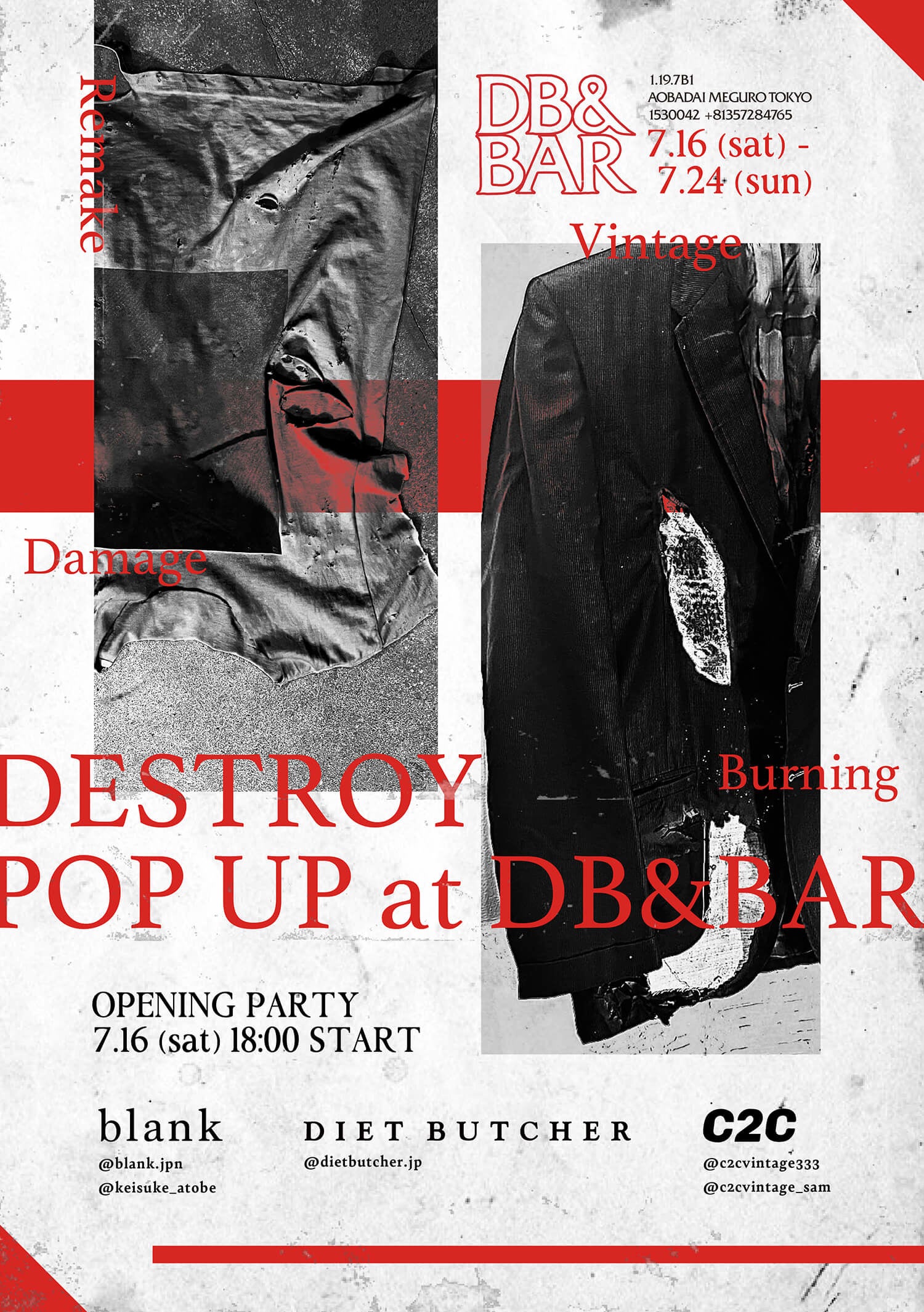 中目黒にあるセレクトショップ 『DB&BAR / DIET BUTCHER』 にて、7月16日(土) より 、アパレルブランド”blank”と、独創的なセレクトで様々な年齢層から支持される古着バイヤー ”C2C vintage” 代表 SAM氏によるポップアップストアを開催いたします。