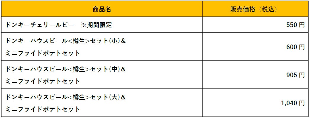 また、グランドメニュー改定に合わせ、ドンキーオーガニックビール<⽣>がドンキーハウスビール<樽⽣>に名前を⼀新します。