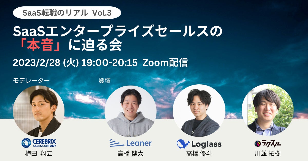 SaaSエンタープライズセールスの「本音」に迫る会を開催、スタートアップでの働き方を語るオンラインイベント〜SaaS転職のリアル Vol.3〜