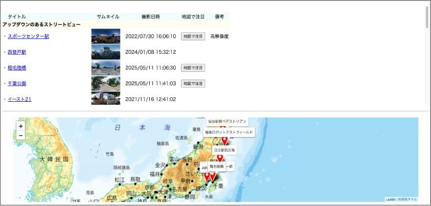 カメラのGPS情報を利用して撮影現場を地図上にプロットします。現場の位置関係が明瞭になります。