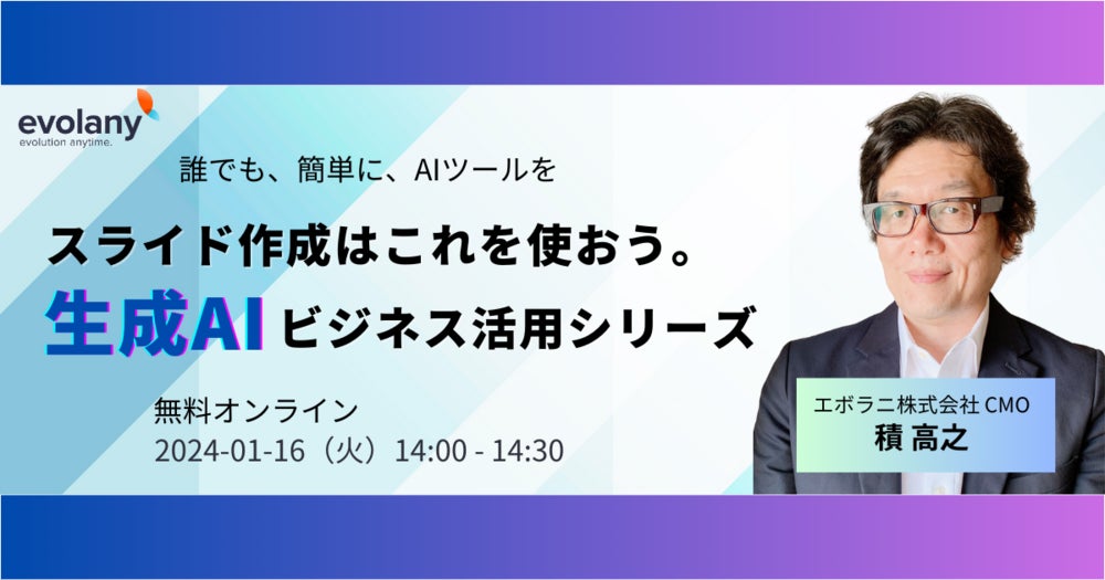 1月16日(火)14:00〜14:30、生成AIを実務で活用するヒントをお伝えするオンラインセミナーを開催します。