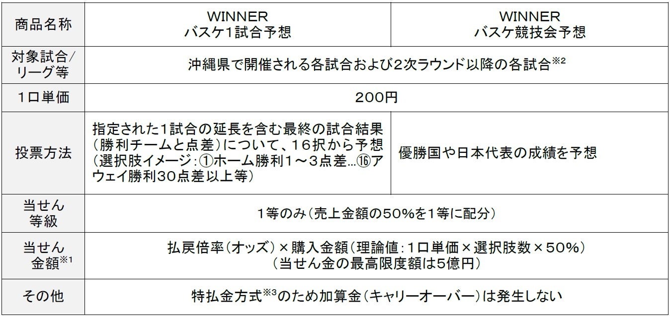 バスケットボールワールドカップを対象とした「WINNER」の販売予定
