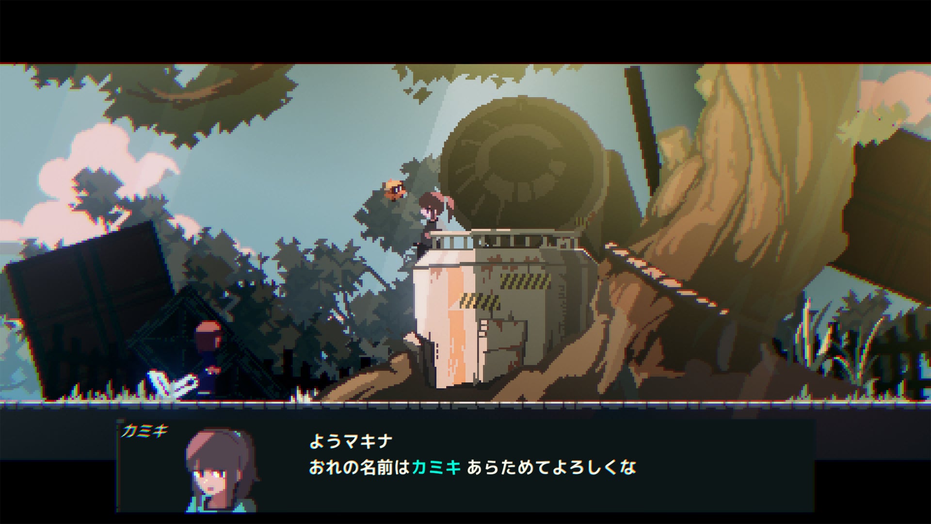 『果てのマキナ』はブーメランとワープを使いこなすアクションゲームです。舞台となるのは文明崩壊後、カラクリという謎の生命体にあふれる世界。とある少女 "マキナ" は、目を覚ますと記憶喪失になっていました。彼女は幼馴染の"カミキ"とともに、忘れてしまった思い出を集めます。鍵を握るのは、マキナが授かったブーメラン型の剣。ブーメランを投げた先にワープできる能力を駆使して、険しい道を切り開きましょう。音楽はボカロP/イラストレーター/アニメーターである、はるまきごはんが担当します。