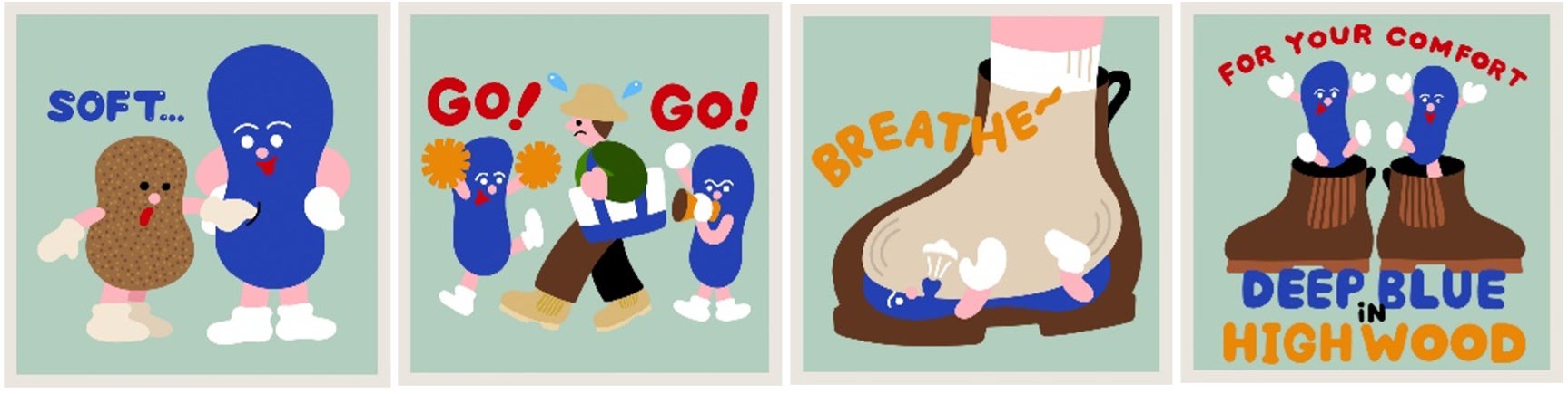 なおHIGHWOODの発売に際し、ビルケンシュトックの公式INSTAGRAMやHPでは、キュートなイラストでDEEP BLUE FOOTBEDの機能をご紹介いたします。イラストレーターのZUCK氏による遊び心にあふれるビジュアルもぜひご覧ください。