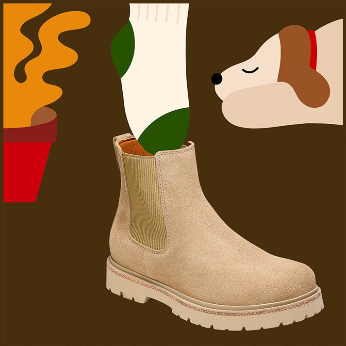 特別なインソールに合わせるのは、オーセンティックな雰囲気のグレインレザーやスエードのアッパー。ソフトなコットンミックスのサイドゴアが足にやさしくフィットし、快適さとすっきりとしたシルエットをもたらします。機能性を保ちつつ、シンプルでスタイリッシュなデザインに仕上げたブーツは秋冬の幅広いシーンで活躍します。
