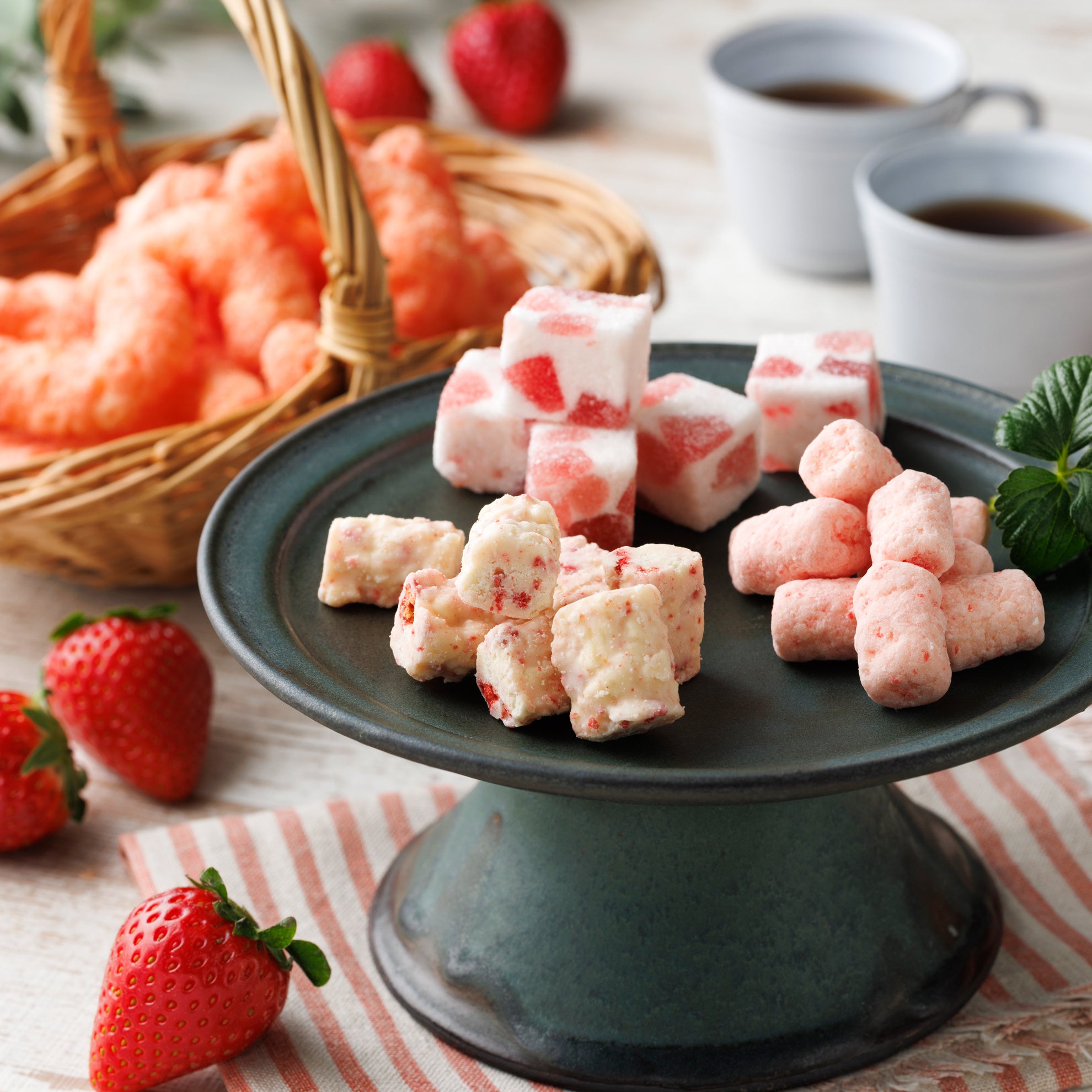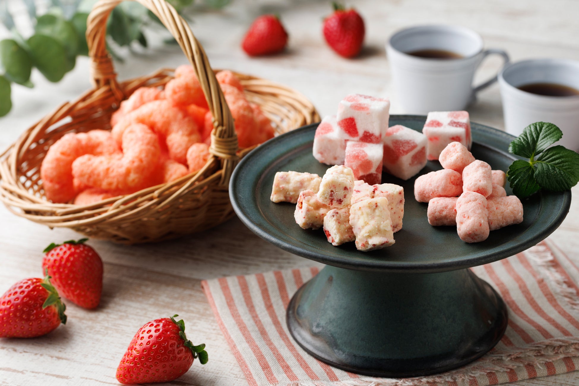 甘酸っぱいいちご味のお菓子が大集合!いろいろな味わいや食感が楽しめます。