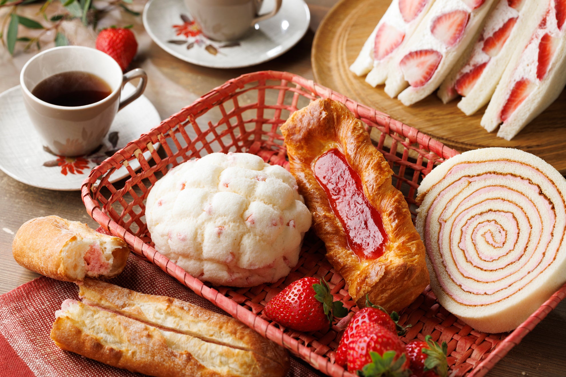 赤と白のコンビネーションでいちごが楽しめるベーカリー&いちごのサンドイッチ。甘酸っぱい味わいは朝食や軽食にぴったりです。