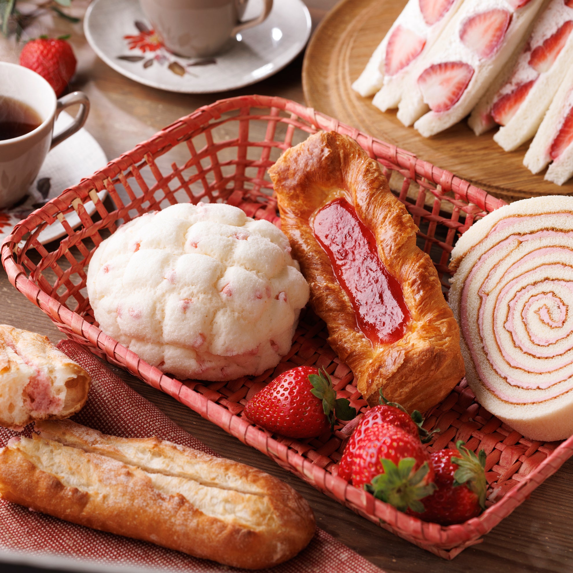 第4弾となる今回のコラボでは、昨年もコラボしたスイーツ・調理パン・ベーカリーに加え、今年はアイスや中華まん、チルド飲料、お菓子が新発売となります。バラエティ豊かないちご商品がそろいました。