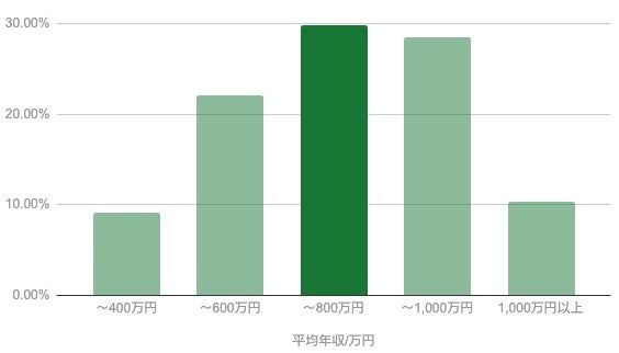 ・年収600万円以上が69%、年収800万円以上が39%を占める