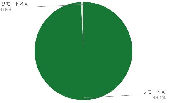 フリーランスのデザイナー案件は、リモート可案件がほぼ100%を占めており、仕事の特性上リモートでできる業務が多いことを表しています。