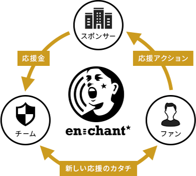 ここ数年SDGsやサスティナブル、エシカルといった言葉が浸透する中、社会的価値がある活動に、より大きな共感や支持が集まるようになりました。それに伴い、スポーツチームや企業による地域貢献活動など、社会課題への取り組みが今まで以上に活発になっています。en-chantは、このような活動をより多くのファンや地域住民に知っていただき、チームやスポンサーと一緒に取り組めるしくみです。ファン・スポンサー・チームが同じ目標に向かって一体となることで、