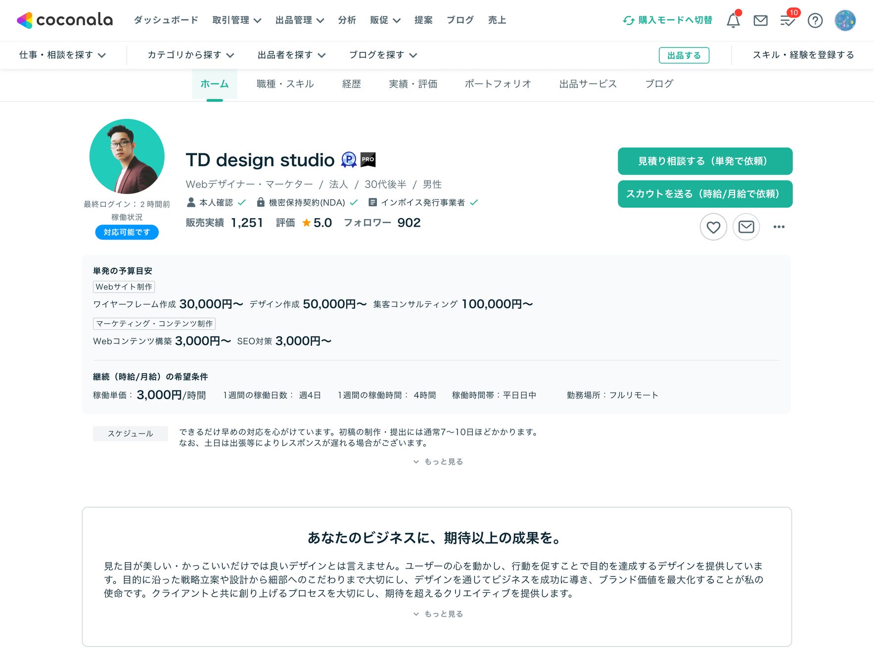 ココナラ運営を介して面談を実施。依頼者・候補者間でのメッセージのやり取りを踏まえ条件を決定の上、稼働開始となります。