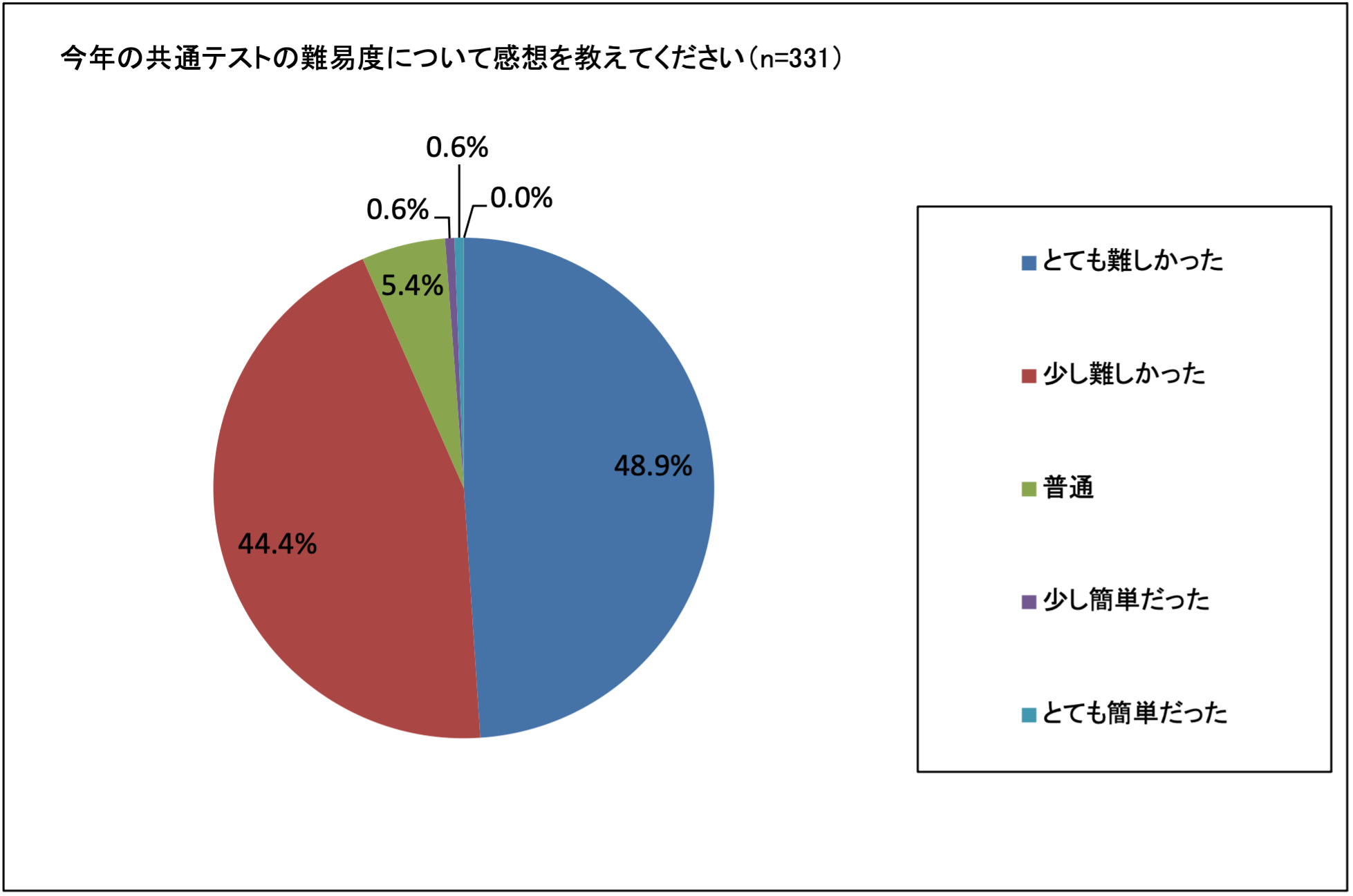 共通テスト受験生の93.3%が共通テストは「難しかった」と回答、約半数は「とても難しかった」と回答