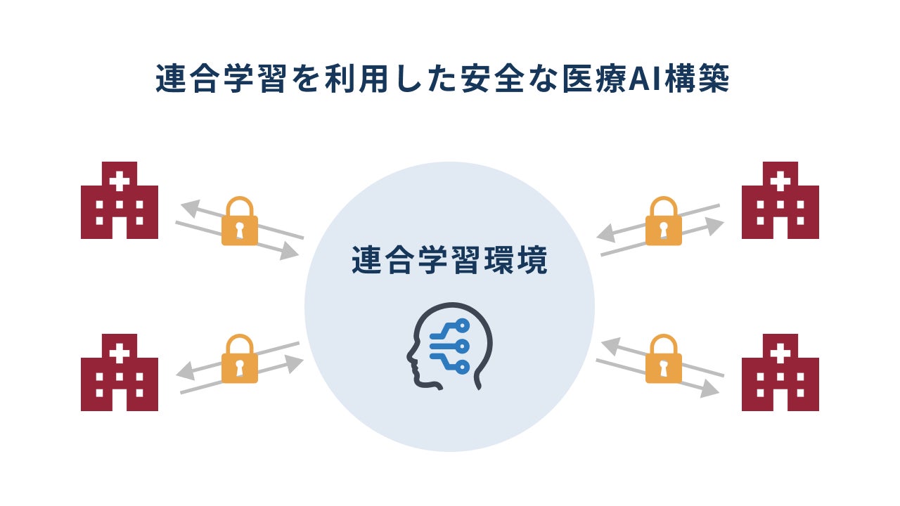 本研究では、連合学習という新しい暗号技術を用いることで、この課題の解決を目指します。連合学習を利用すれば、データを秘匿化したまま機械学習を行うことができるため、個人情報を第三者に開示することなく、複数施設の医療データを安全に結合して学習できる可能性があります。