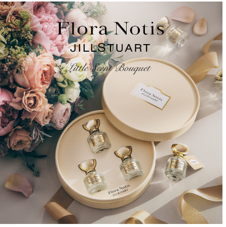 ラテン語で“花の本質”という意味をもつ『Flora Notis JILL STUART』は、ニューヨークを拠点に活躍するファッションデザイナー、ジル・スチュアートの愛する花々へのこだわりと想いが込められた、花の香りに包まれた上質なライフスタイルを提案するブランドです。