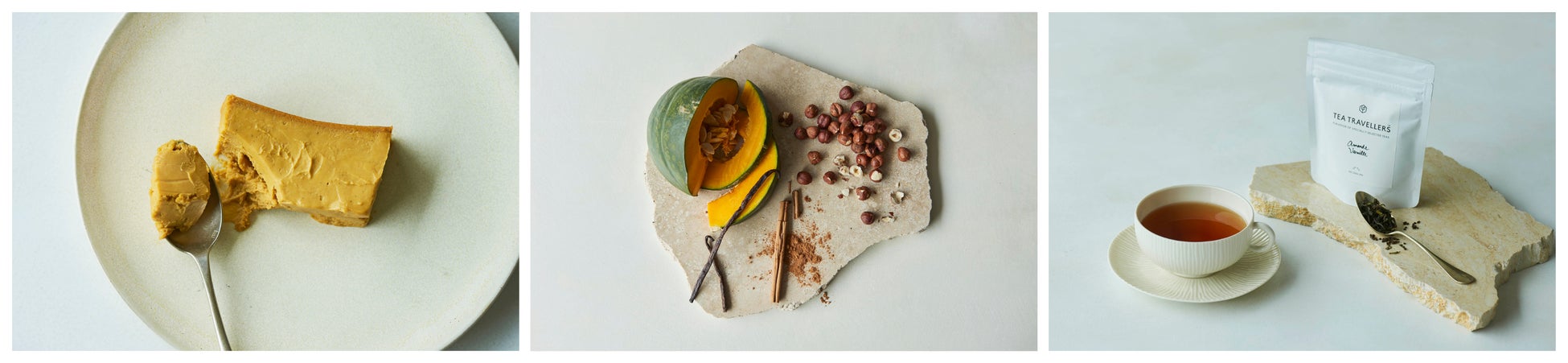 今年のフレーバーは、どちらもシンプルに素材の味を堪能できるよう仕立てました。和の表情が見える繊細で上品な安納芋フレーバー。洋のテイストを感じるこっくりと濃厚なカボチャとヘーゼルナッツ。今のあなたの気分に寄り添う、特別な秋をお届けできればと思います。