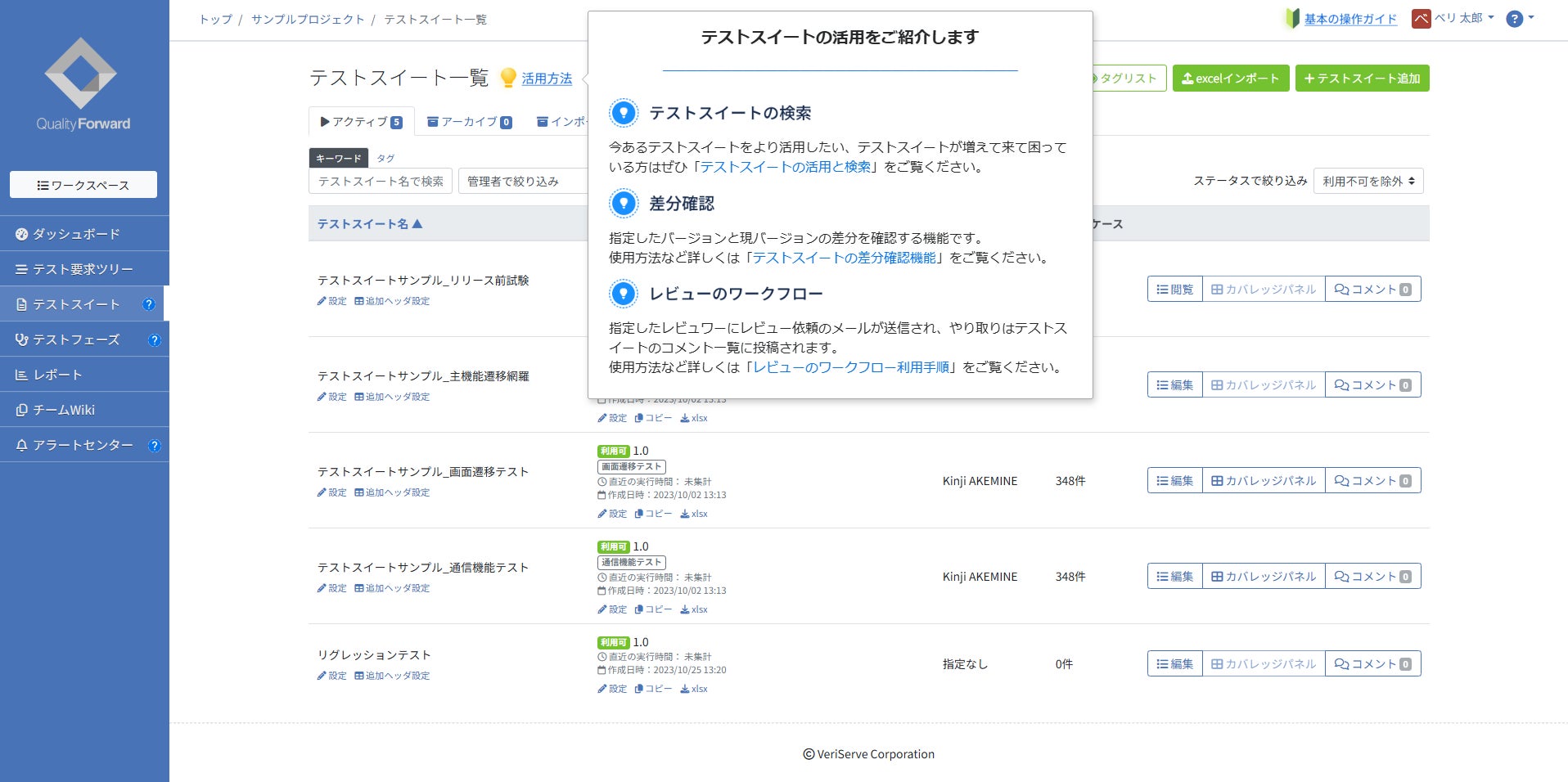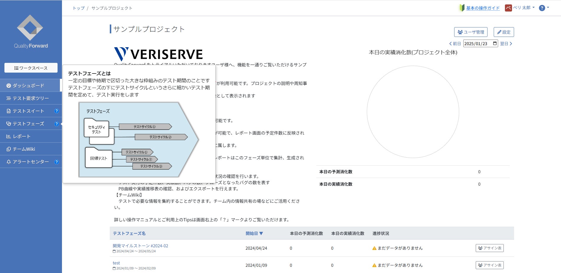 お客様からの相談の解決に向けて、ベリサーブが提供するクラウド型ソフトウェアテスト管理ツール「QualityForward(クオリティフォワード)」にDAP国内シェアNo.1(※2)の「テックタッチ」を試験導入したところ、本ツールのUI(ユーザーインターフェース)とUX(ユーザーエクスペリエンス)が期待以上に改善しました。