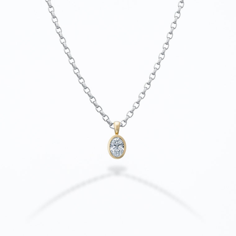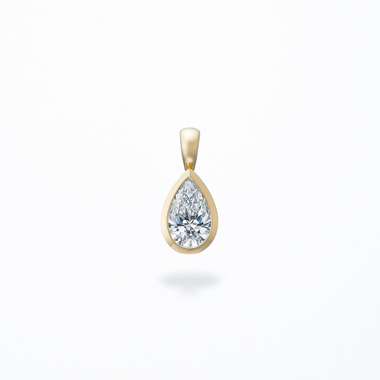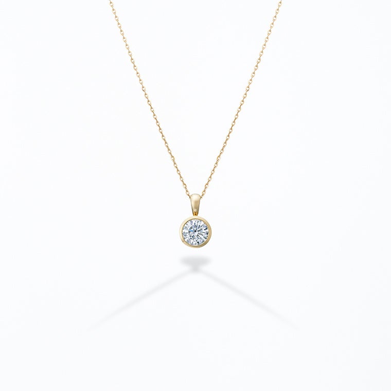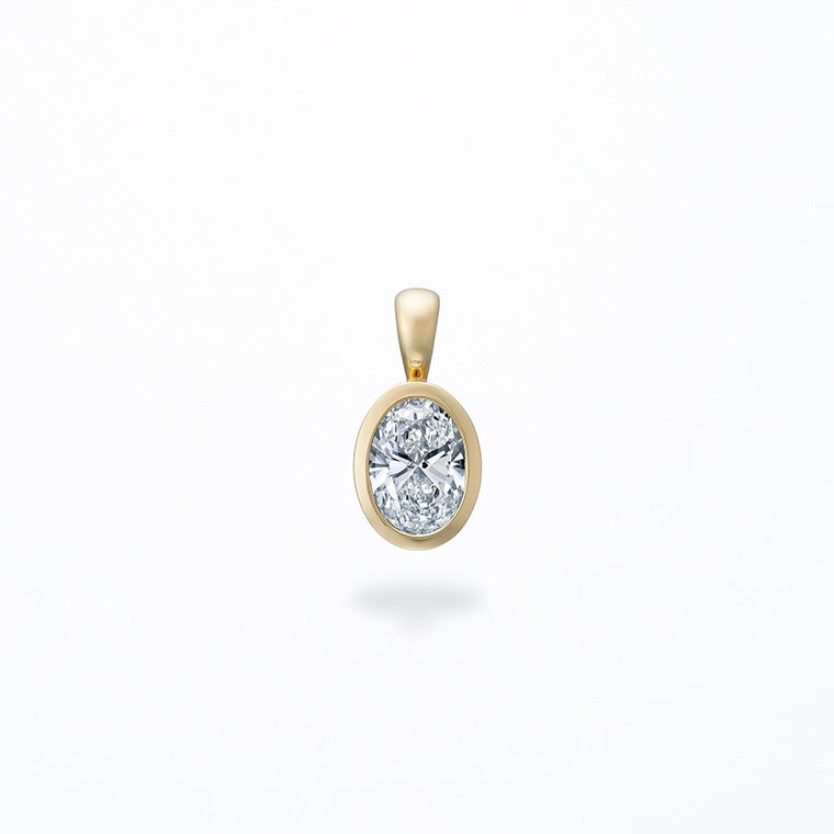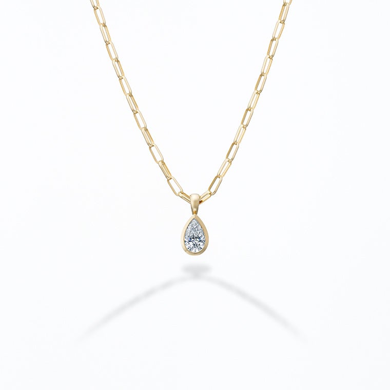 ペンダントトップは全て1ctの大粒ラボグロウンダイヤモンドで、定番のラウンドブリリアントカットのほか、オーバルカット、ペアシェイプカットの3種類をご用意しました。チェーンはプラチナまたはK18イエローゴールドの素材で、45 cm・60 cm・80cmの長さのバリエーションがあり、自由に長さの調整も可能。シンプルからカジュアルまで、トップと合わせ18種類の組み合わせからお気に入りのセットをお選びいただけます。
